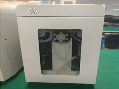 This instrument is equipped with a 2.5mL small-volume syringe, a 5mL large-volume syringe, two sets of three-way valves and a six-way valve.
